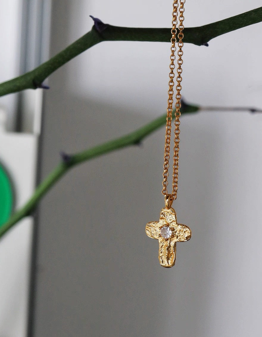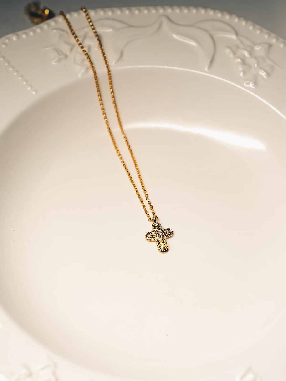 Minimal Zircon Cross Pendant · 18K Gold Plated 925 Silver Layering Necklace